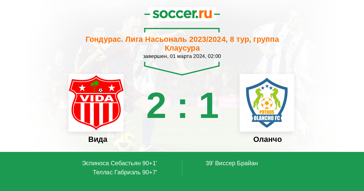 39' (0:1) Виссер Брайан
