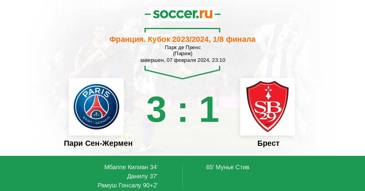 Запасные: 20 Асенсио Марко (с 71'), 14 Угарте Мануэль (с 77'), 19 Рамуш Гонсалу (с 79'), 13 Заге Йорам, 17 Мбаппе Этан, 12 Мукиеле Норди, 15 Маюлу Сенни, 18 Солер Карлос, 16 Навас Кейлор