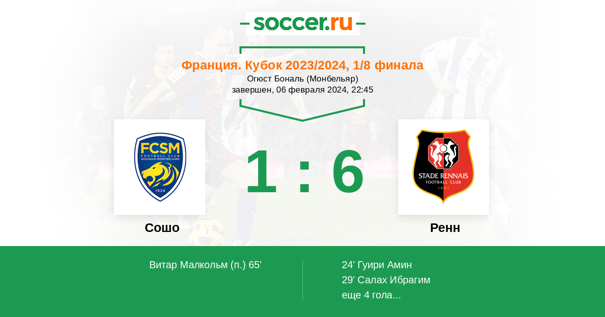24' (0:1) Гуири Амин (10) (Трюффе Адриэн (3))