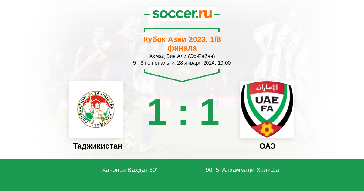 При всём уважении к бывшим землякам по СССР что-то не верится, что команда Таджикистана сможет обыграть опытную и мастеровитую сборную ОАЭ. Максимум, что по силам таджикам это удержать ничью в основное время