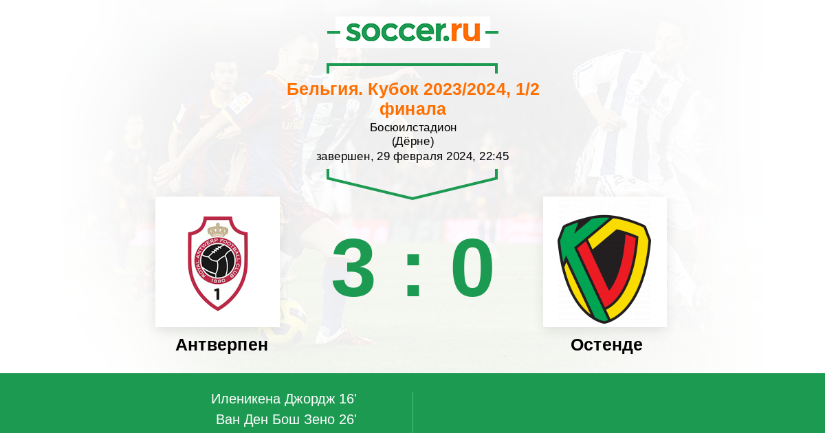 26' (2:0) Ван Ден Бош Зено (33) (Ондрейка Якоб (17))