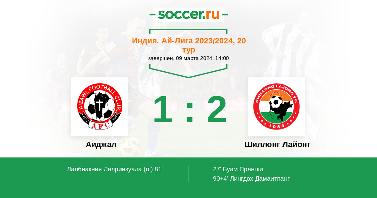 Запасные: 32 Ванлалвунга Лалбиакдика (с 46'), 21 Хмангайхкима Лал (с 46'), 72 A. Memari (с 81'), 27 Лалхриятпуйя Пик, 90 Баретто Кельвин, 30 Сахил Шейх, 44 Саилунг Лалхрезуара, 1 Ванлалриатпуя, 70 Заборовски Рафал, 4 Лалмуанавма