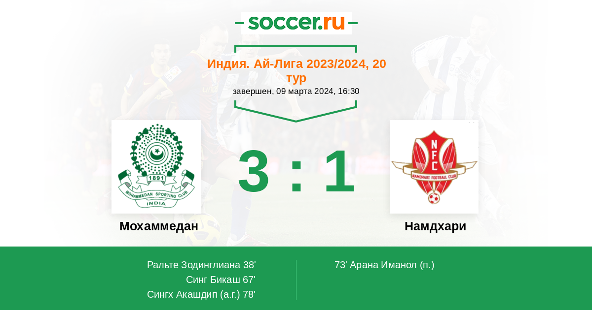 67' (2:0) Синг Бикаш (22) (Луванг Вахенгбам (11))