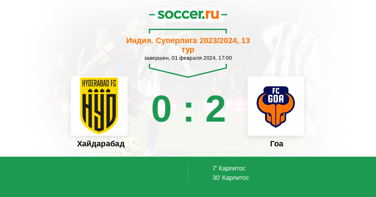 30' (0:2) Карлитос (9) (J. Gupta)