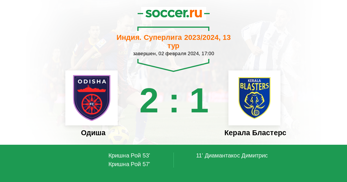 11' (0:1) Диамантакос Димитрис (9) (Садхиш Нихал (77))