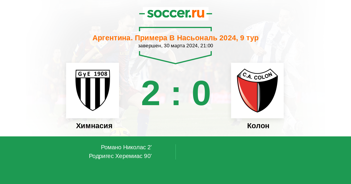 2' (1:0) Романо Николас