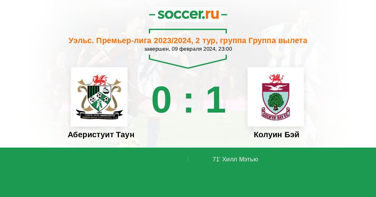 71' (0:1) Хилл Мэтью