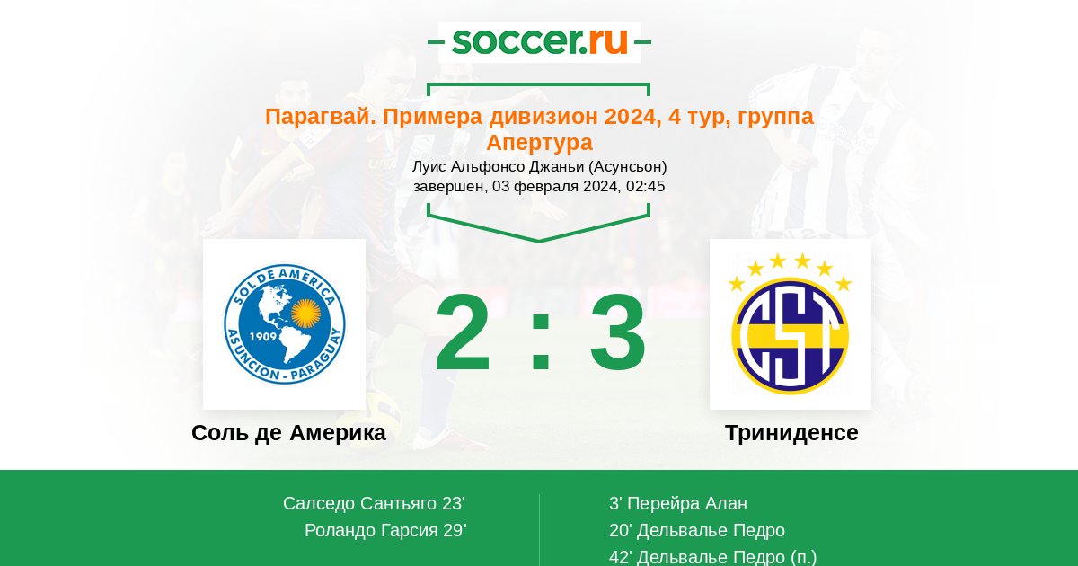 42' (2:3) Дельвалье Педро (10)