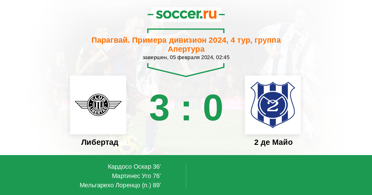 36' (1:0) Кардосо Оскар (7) (Мартинес Уго (22))