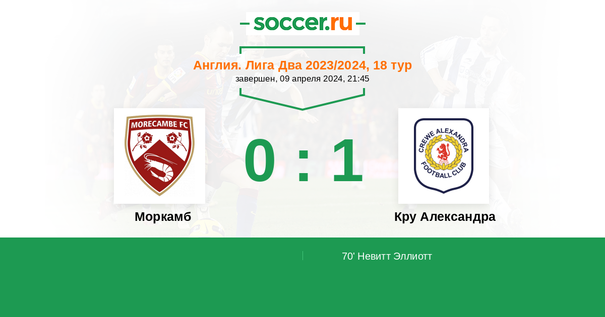 70' (0:1) Невитт Эллиотт (20)