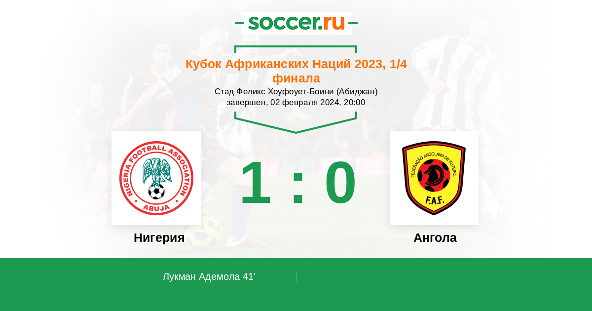 41' (1:0) Лукман Адемола (18) (Саймон Моузес (15))