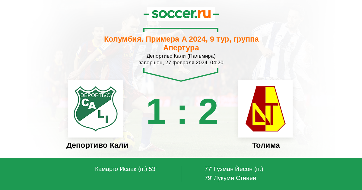 Запасные: 12 Чаверра Хуан (с 46'), 33 Лукуми Стивен (с 62'), 6 Трухильо Кристиан (с 62'), 8 Соса Эдуардо (с 87'), 24 Ангуло Джейсон (с 90+5'), 15 Ньето Хуан Пабло, 17 Марлон Торрес