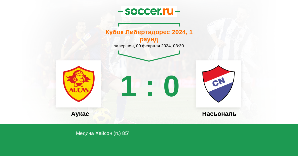 85' (1:0) Медина Хейсон (9)