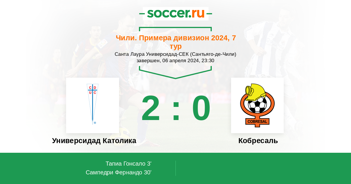 30' (2:0) Сампедри Фернандо (9) (Тапиа Гонсало (20))