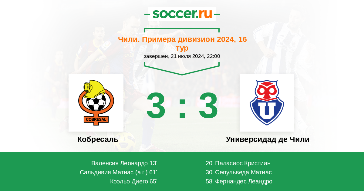 61' (2:3) Автогол Сальдивия Матиас (22)