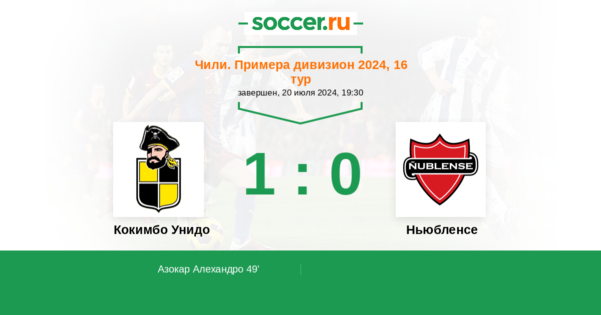 49' (1:0) Азокар Алехандро (11) (Чандиа Бенжамин (30))