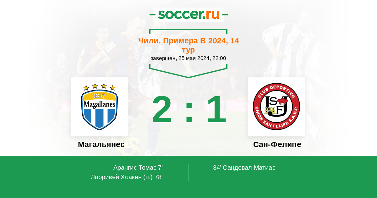 34' (1:1) Сандовал Матиас