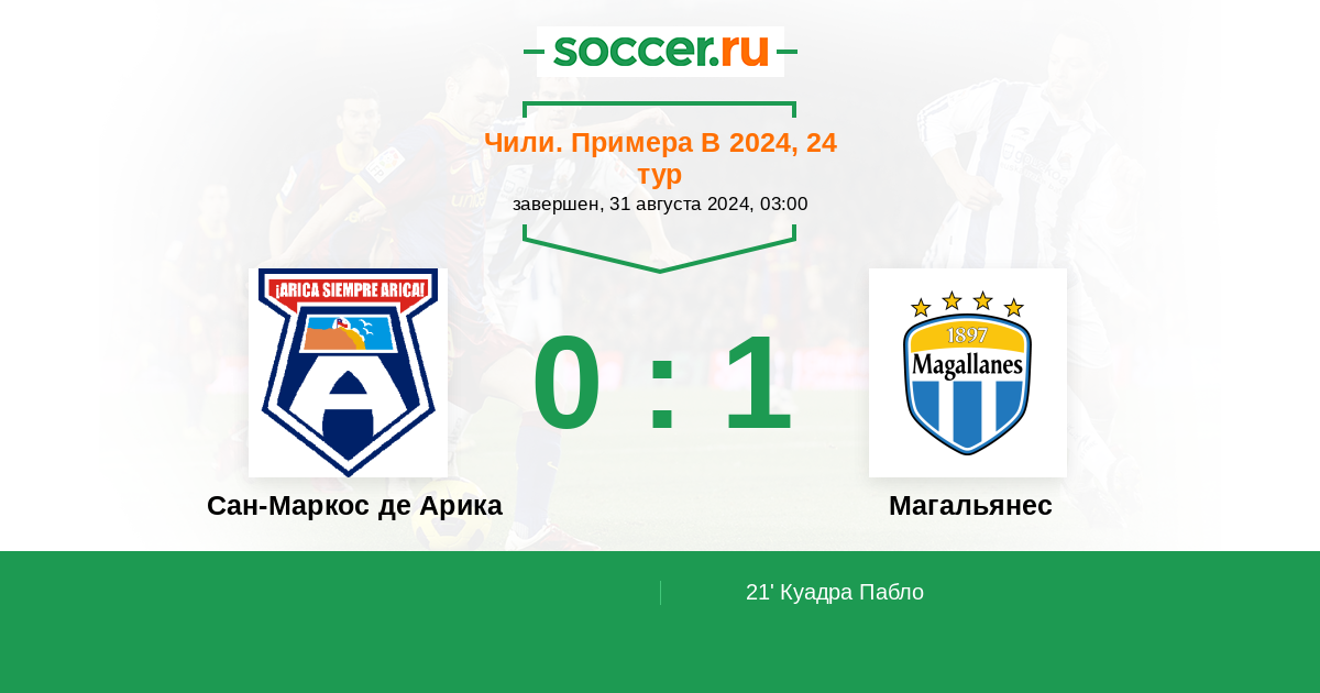 21' (0:1) Куадра Пабло