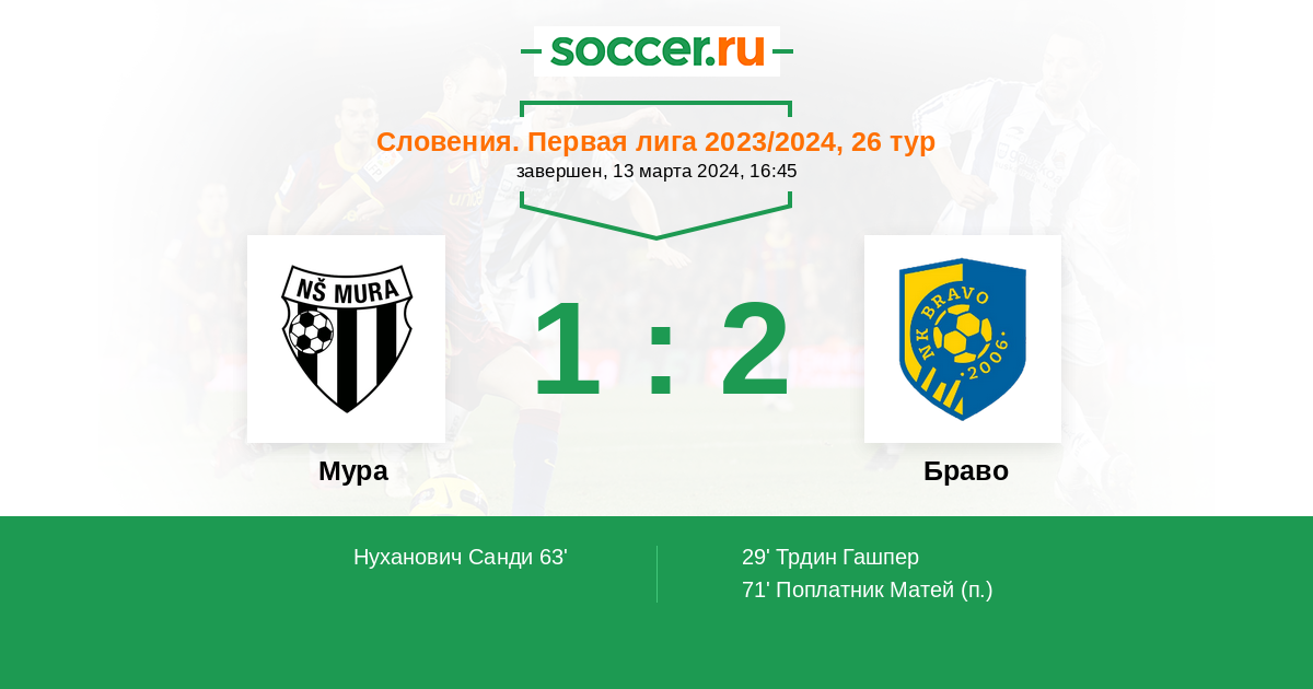 29' (0:1) Трдин Гашпер (8)