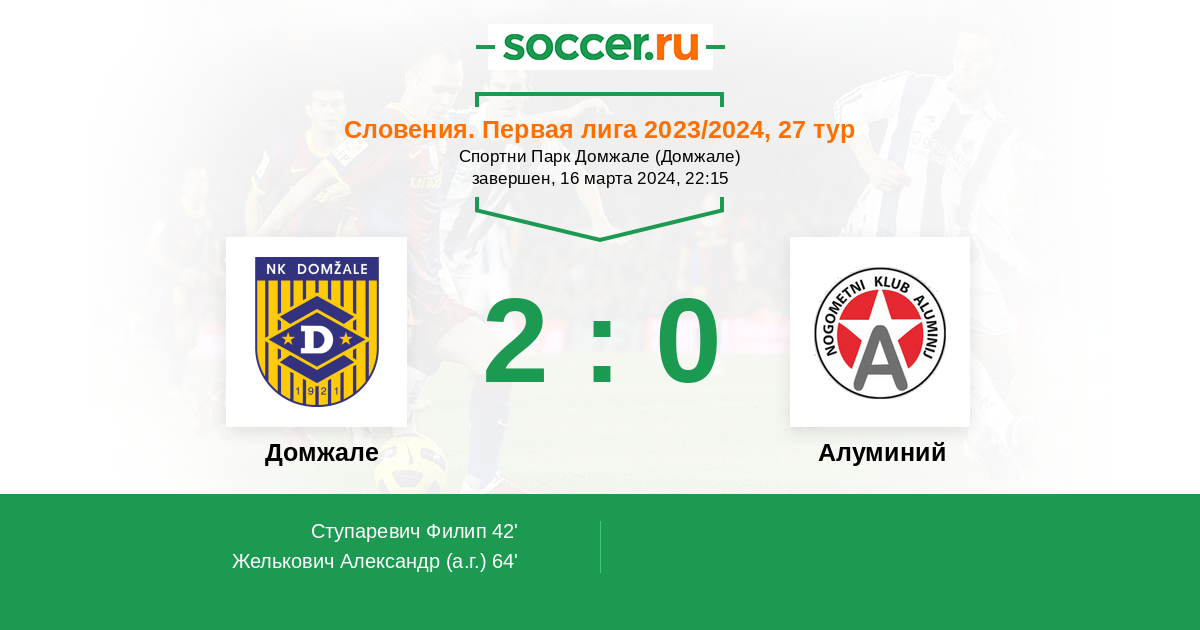 64' (2:0) Автогол Желькович Александр (3)