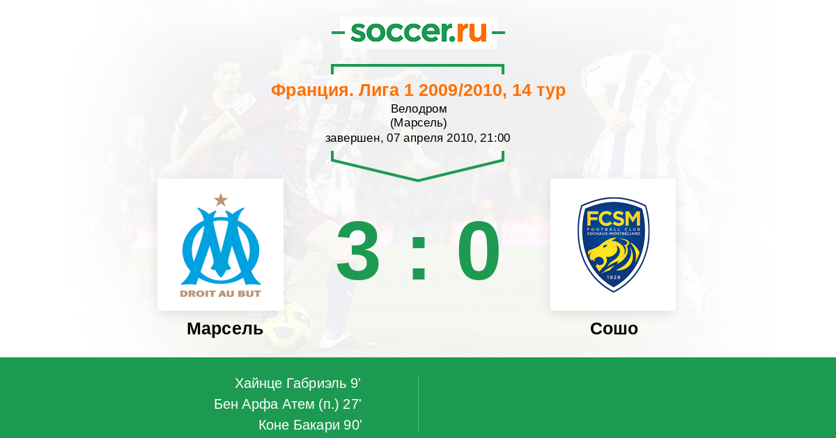 27' (2:0) Бен Арфа Атем (10)