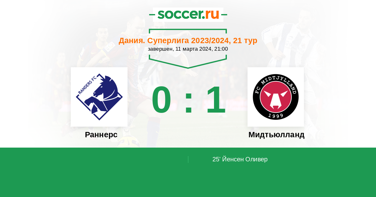 25' (0:1) Йенсен Оливер (24)