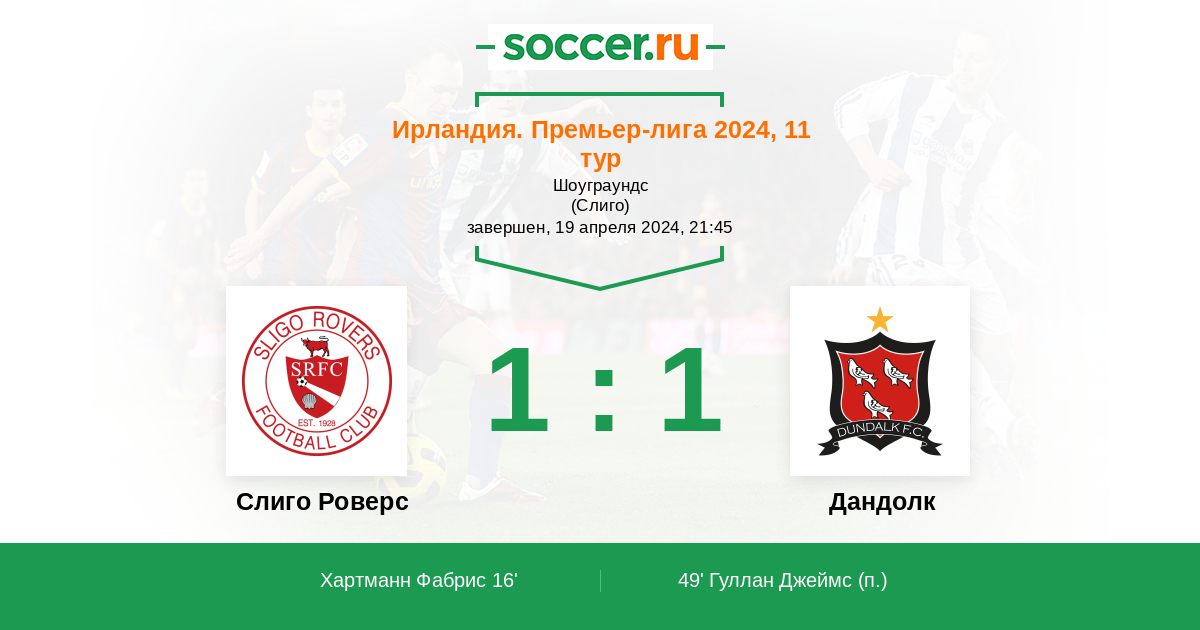 49' (1:1) Гуллан Джеймс (9)