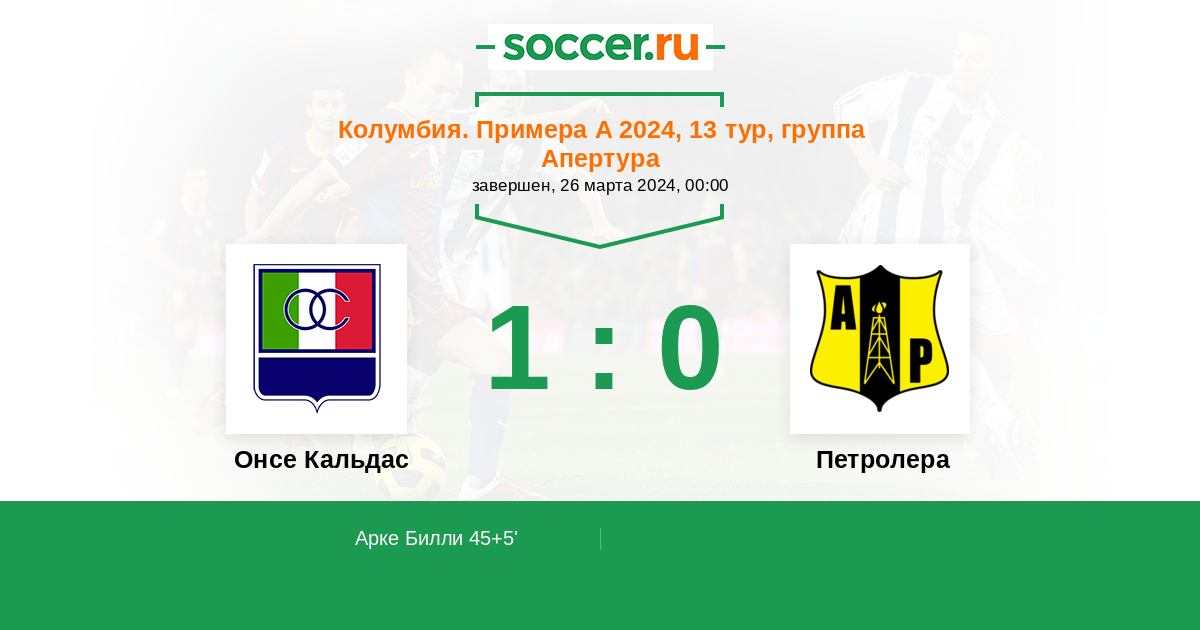 45+5' (1:0) Арке Билли (11) (Мурильо Йонатан (29))