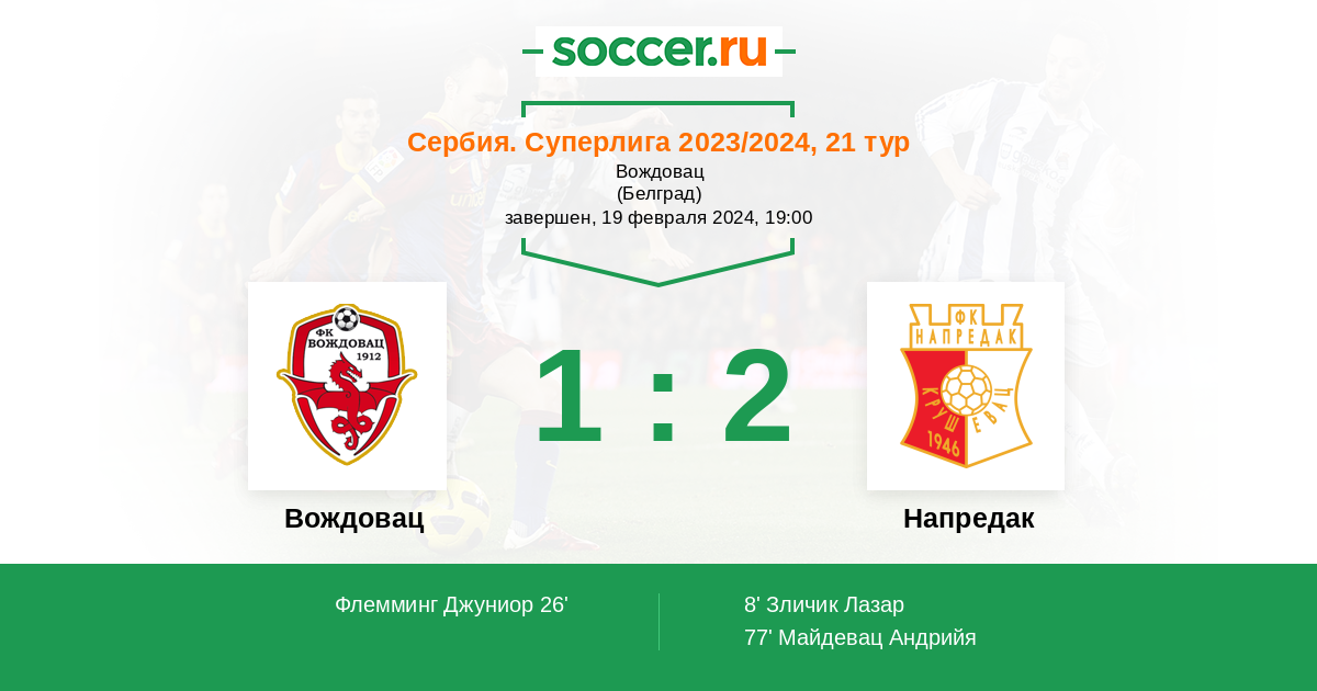 8' (0:1) Зличик Лазар (23) (Майдевац Андрийя (55))
