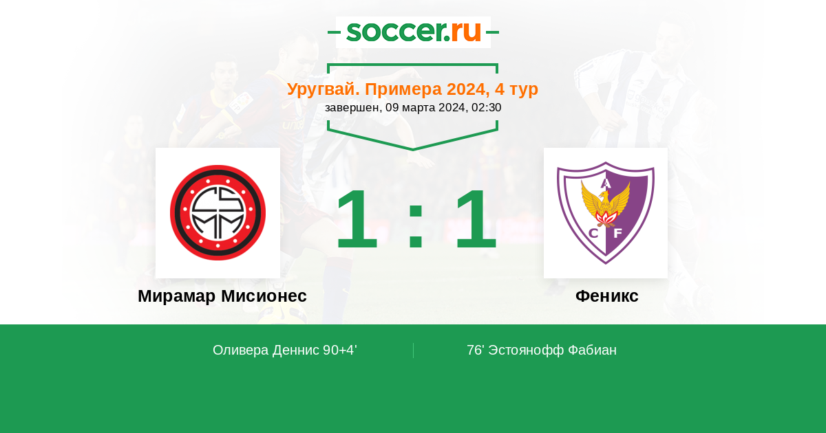76' (0:1) Эстоянофф Фабиан (11)