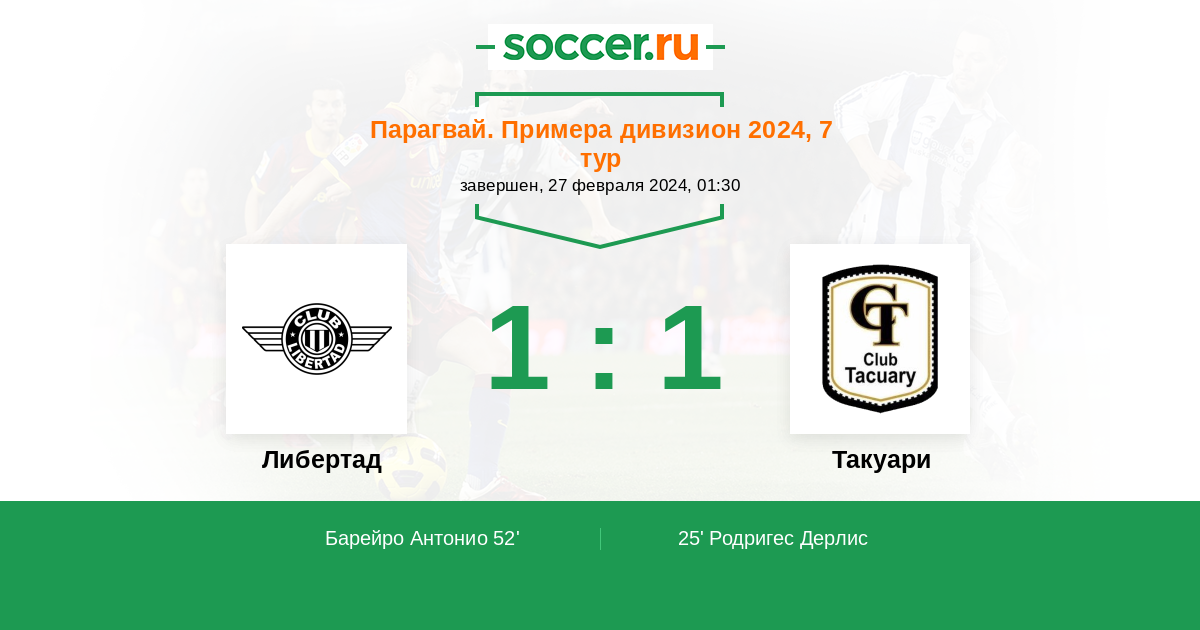 25' (0:1) Родригес Дерлис (10) (Феррас Виктор (3))