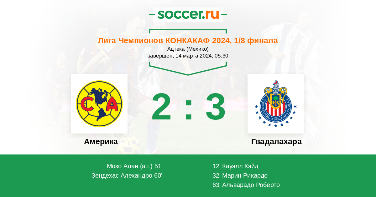 32' (0:2) Марин Рикардо (19) (Альварадо Роберто (25))