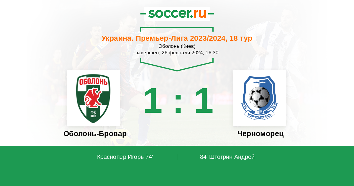 74' (1:0) Краснопёр Игорь (95) (Вишневский Олег (7))