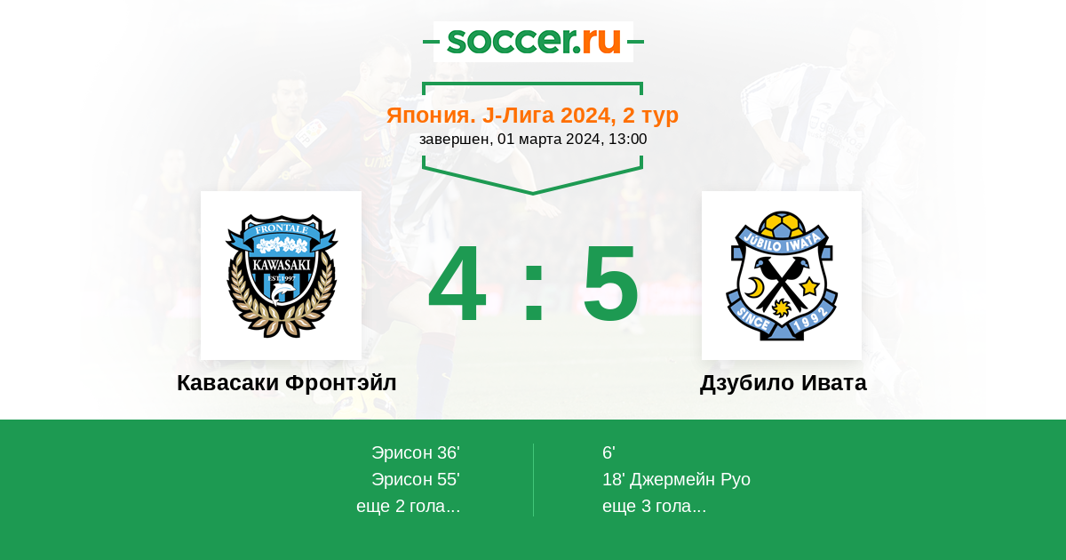 55' (2:3) Эрисон (9) (Секо Тацуки (16))
