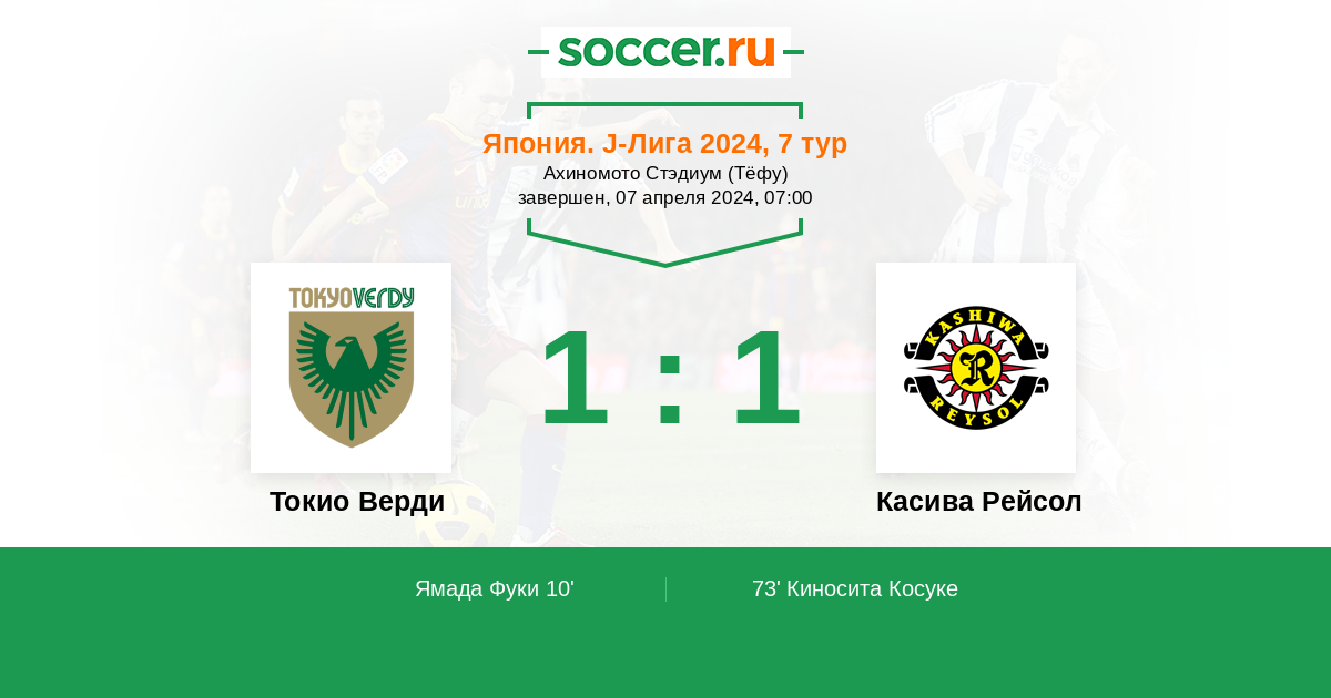 73' (1:1) Киносита Косуке (15) (Савио Матеус (10))