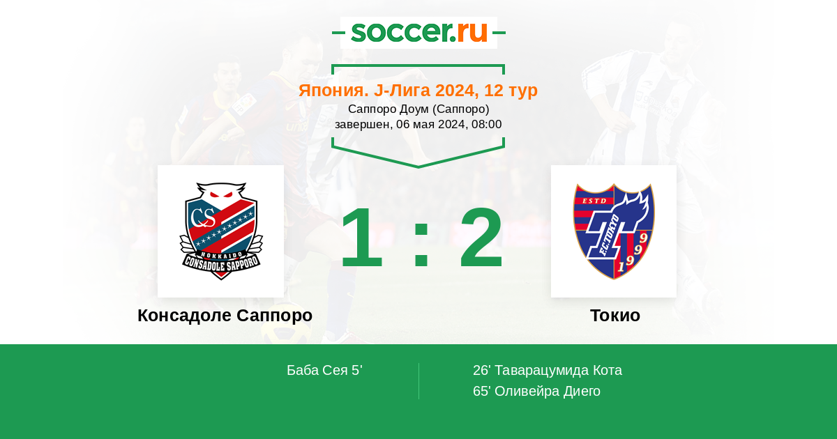 65' (1:2) Оливейра Диего (9) (Накагава Терухито (39))