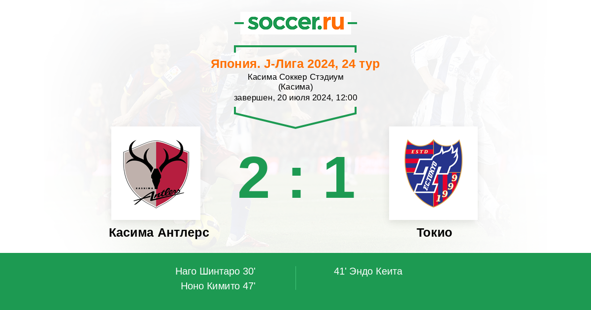 41' (1:1) Эндо Кеита (22) (Токумото Сухей (43))
