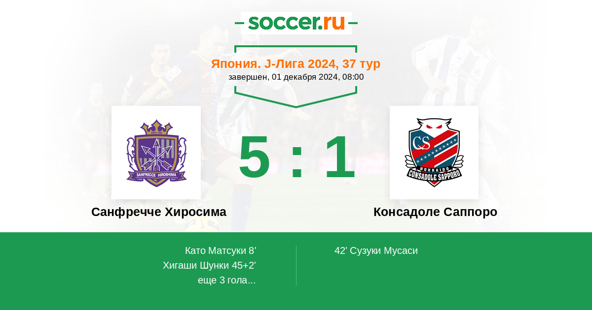 8' (1:0) Като Матсуки (51) (Хигаши Шунки (24))