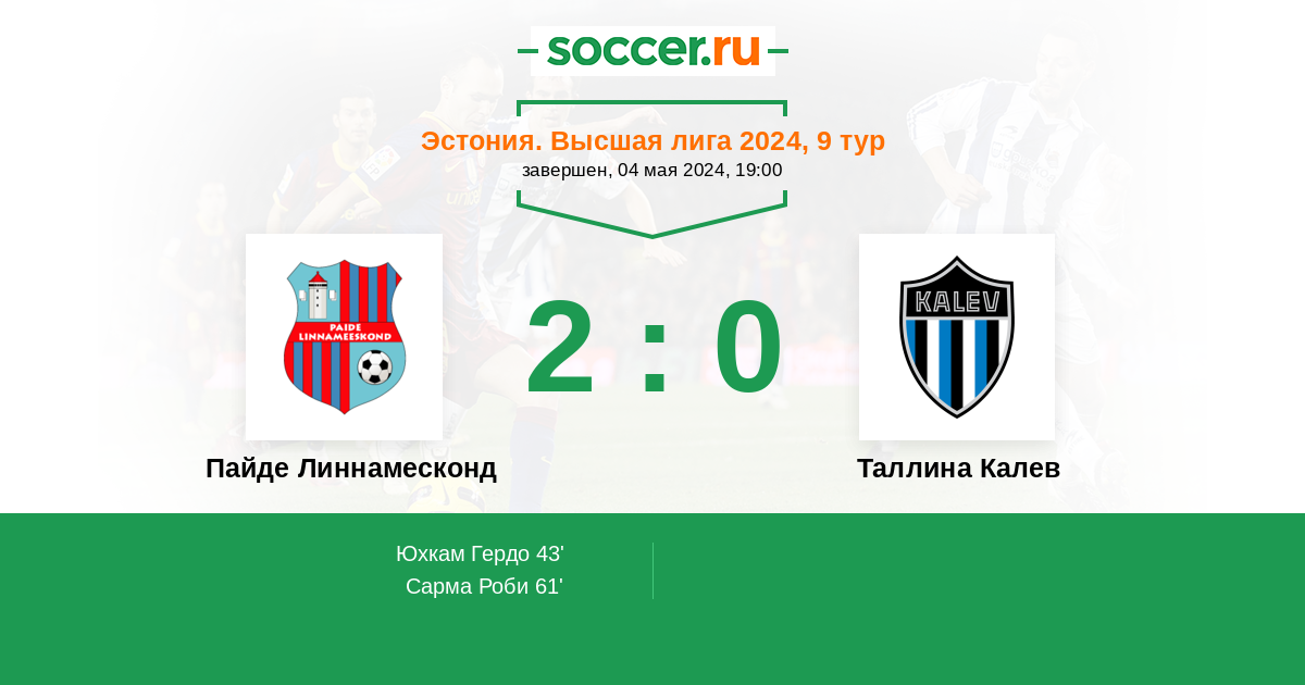 Запасные: 14 Шведовски Александр (с 59'), 6 Палутая Уго (с 68'), 9 Сутари Онни (с 68'), 30 Пыдер Джозеф (с 83'), 66 Каджари Энрико (с 83'), 19 Томберг Мартин, 27 Талвисте Эверт, 80 Ласнер Кенлу, 99 Ликер Сандер