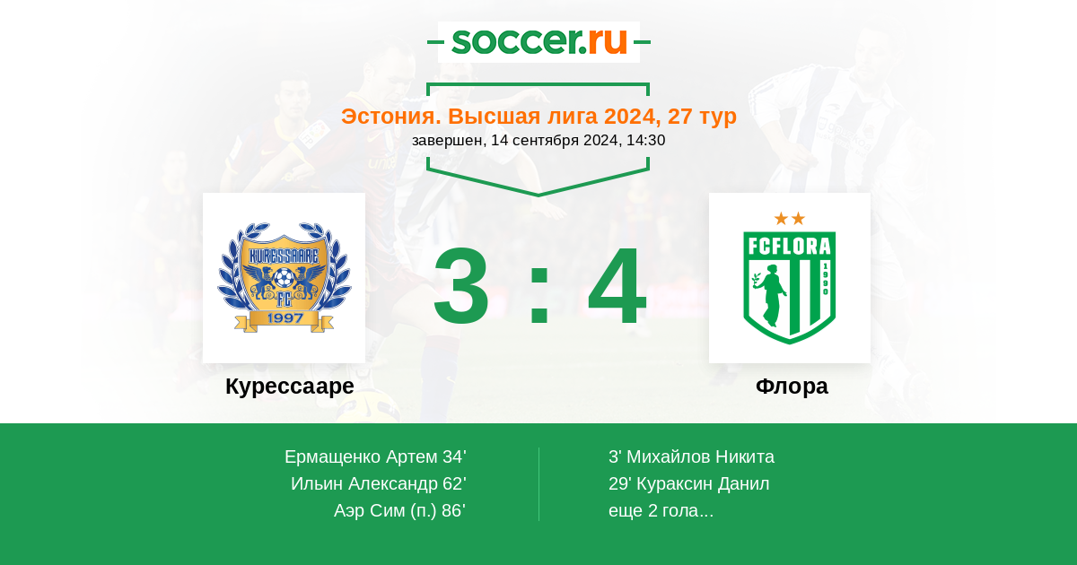 Запасные: 41 Каарес Андеро (с 81'), 3 Вахер Андреас, 18 Валдметс Ремо, 24 Пихела Оскар, 29 Аламаа Сандер, 77 Лапа Кристен, 78 Кукк Марк, 80 Лукас Роланд, 89 Калимуллин Максим