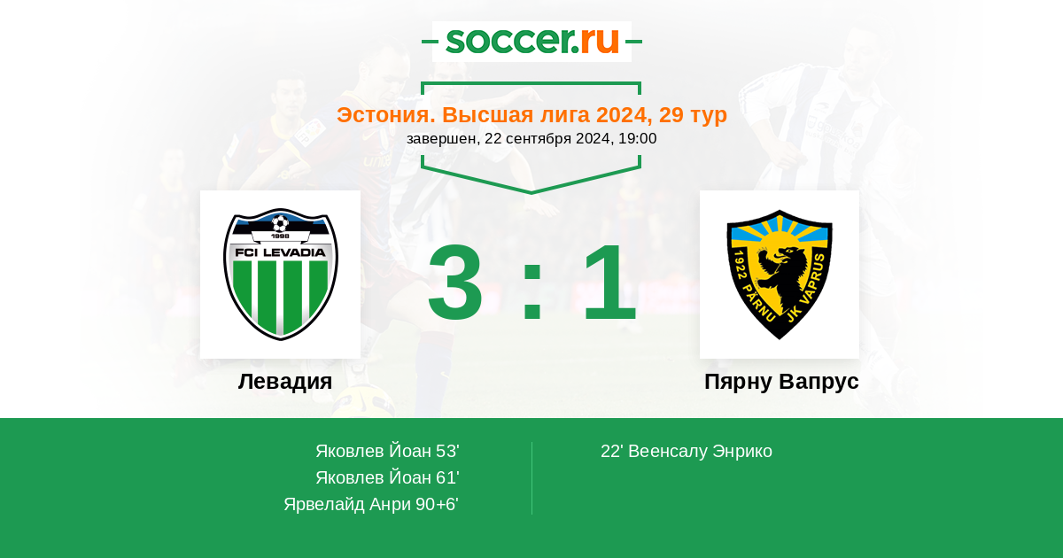 Запасные: 8 Ба Мамаду (с 73'), 30 Леписту Брент (с 82'), 41 Скворцов Максимилиан (с 82'), 45 Ярвелайд Анри (с 88'), 1 Ани Оливер, 25 Калласте Кен, 22 Сакариас Артур, 3 Лийв Губерт, 59 Гусев Максим