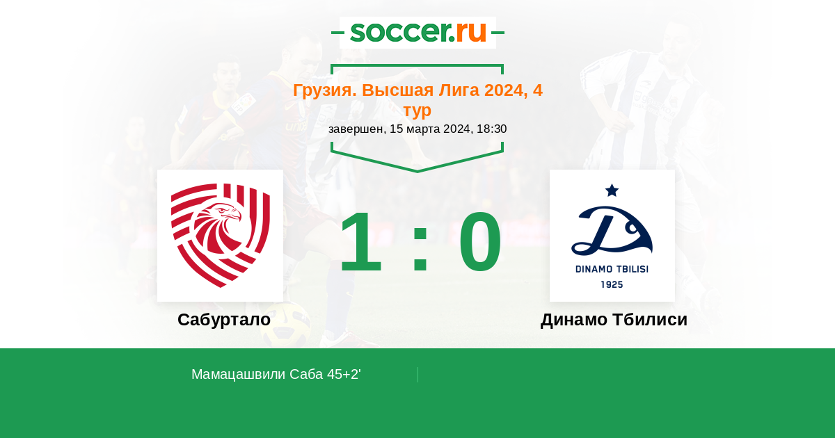 Запасные: 37 Макацария Михаил (с 37'), 40 Акпудже Джошуа (с 46'), 16 Осикмашвили Леван (с 46'), 19 Гоциридзе Давид (с 85'), 5 Пейкришвили Александр, 14 Шукуров Алишер, 22 Гогнадзе Темур, 35 Харуна Сандей, 26 Кверенчхиладзе Шота