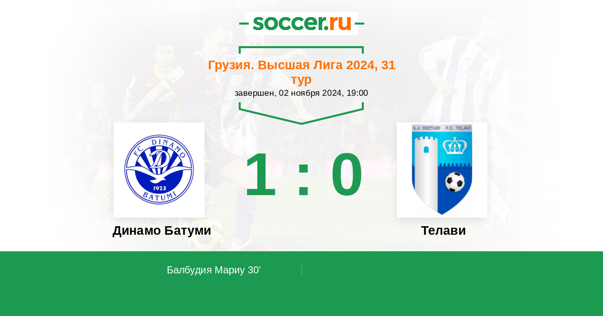 Запасные: 21 Тамбеду Бубакар (с 63'), 9 Мужири Давит (с 81'), 40 Пачулия Дито (с 87'), 22 Инаишвили Давит, 30 Квасхвадзе Роин, 39 Джапаридзе Гурам
