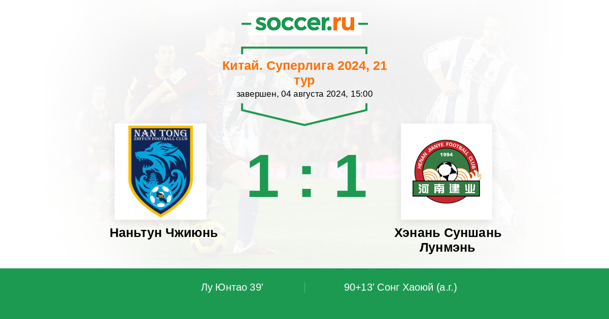 39' (1:0) Лу Юнтао (38) (Жианг Зилей (18))