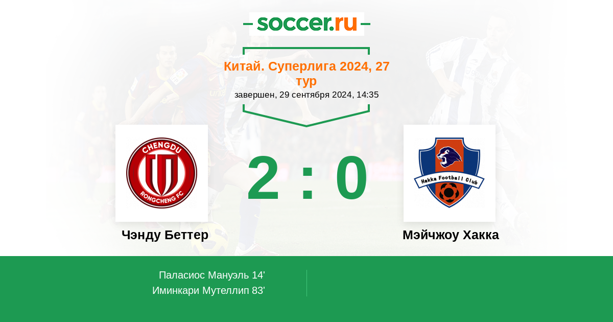 14' (1:0) Паласиос Мануэль (31) (Шихао Вей (7))