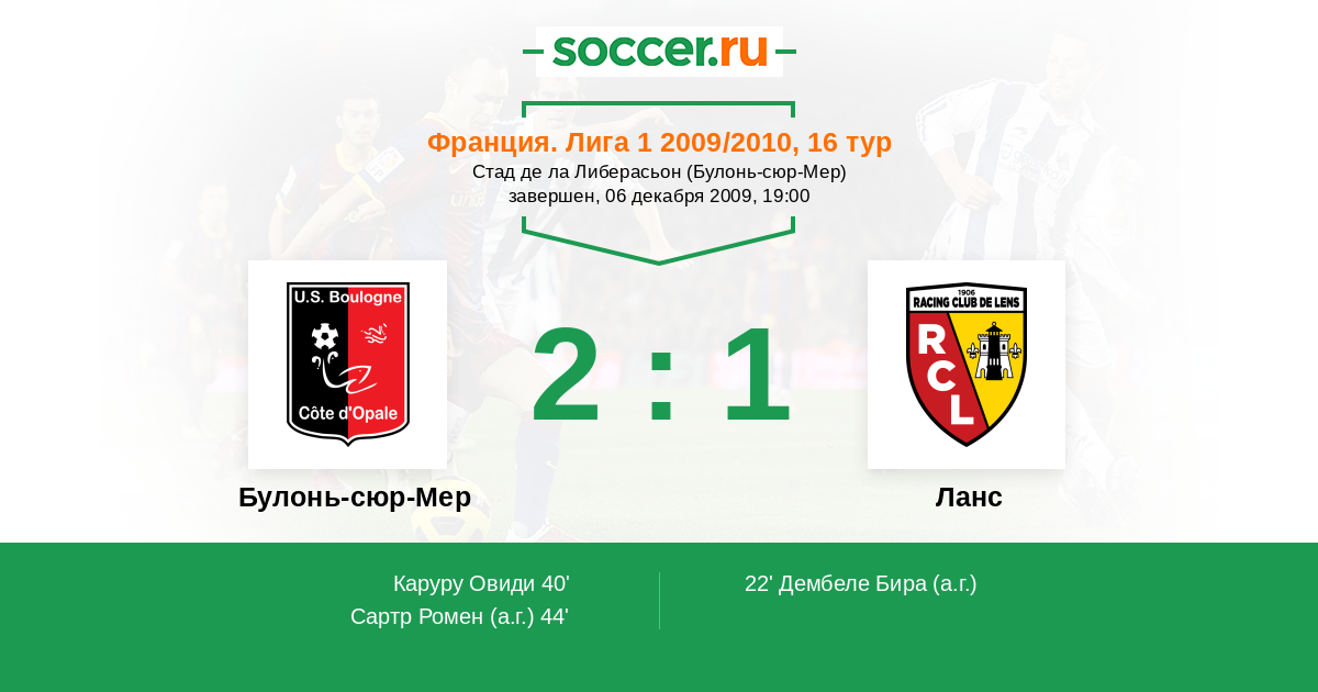 44' (2:1) Автогол Сартр Ромен (19)