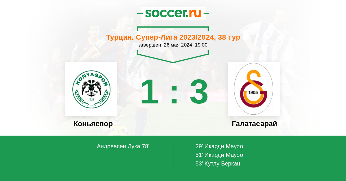 29' (0:1) Икарди Мауро (9) (Кён Деррик (17))