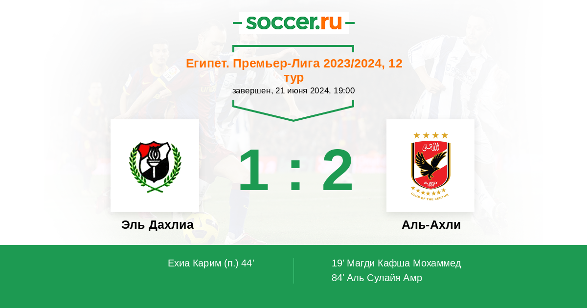 19' (0:1) Магди Кафша Мохаммед (19) (Кахраба Махмуд (7))