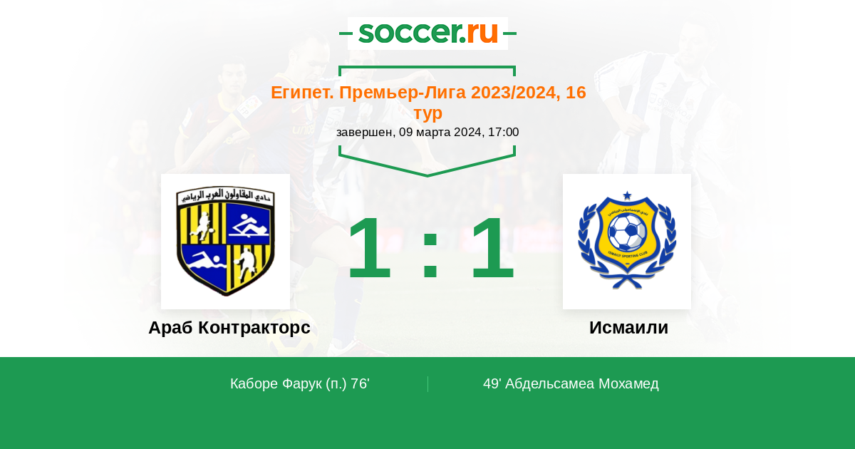49' (0:1) Абдельсамеа Мохамед (11)