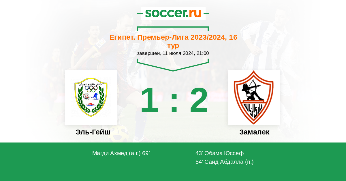 69' (1:2) Автогол Магди Ахмед (49)